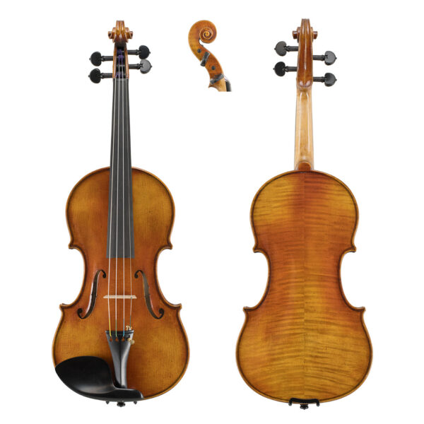 El modelo VN-735 está fabricado con una tapa de abeto macizo y fondo de arce flameado. Aunque es el modelo de nivel avanzado-superior de Otto, está hecho de maderas macizas de alta calidad y cuenta con el mismo nivel de artesanía que se encuentra en modelos de gama profesional. Es una elección perfecta para jóvenes músicos que valoran un sonido cálido y rico.